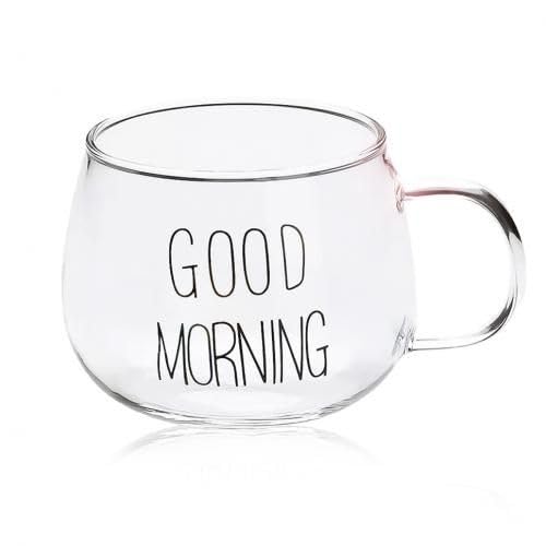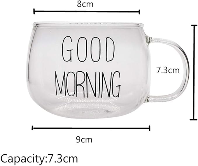 Generic - كوب شاي وقهوة زجاجي شفاف للمشروبات والحليب والحلوى والحبوب بطباعة عبارة «Good Morning» بحروف سوداء من بيرسيبوليس