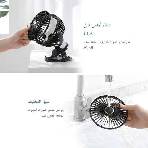 - توفر مروحة المكتب الصغيرة المحمولة هذه دورانًا متعدد الاستخدامات بزاوية 360 درجة، مما يسمح لك بالاستمتاع بالهواء البارد من أي اتجاه. سواء كنت في المنزل أو المكتب أو التخييم في الخارج، فإن تصميمه المرن يضمن لك إمكانية وضعه بأي طريقة تناسب احتياجاتك - مثالي لعربات الأطفال أو المكاتب أو أنشطة التمرين.