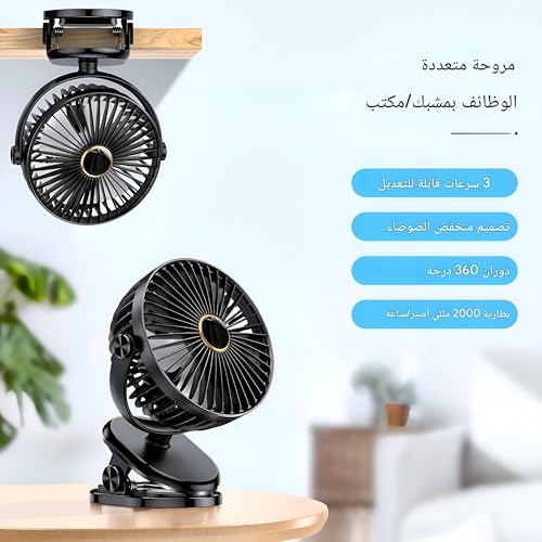 Generic - مروحة شخصية للمكتب صغيرة محمولة قابلة لإعادة الشحن مع دوران 360 درجة ومشبك لعربات الأطفال والتخييم والاستخدام اليومي (2 خيار)