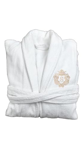Shib Square - روب حمام ابيض مخصص مع حرف واحد فقط مطرز، قماش فاخر ناعم ماص من وولي هيوز