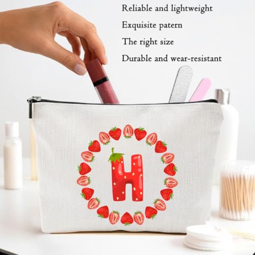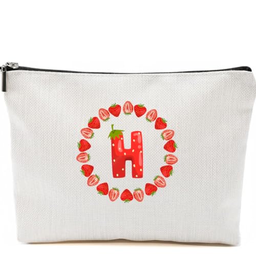 Generic - شنطة مكياج او مقلمة بحروف اولية مخصصة، شنطة مستحضرات تجميل بتصميم فراولة مع سحاب، هدايا عيد ميلاد للنساء والفتيات والاطفال وحروف الفراولة (H)