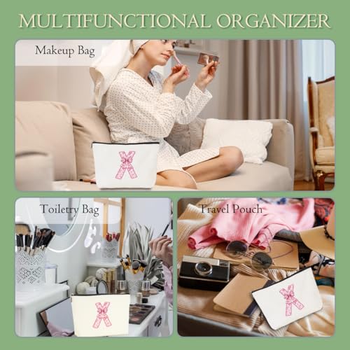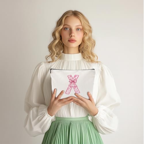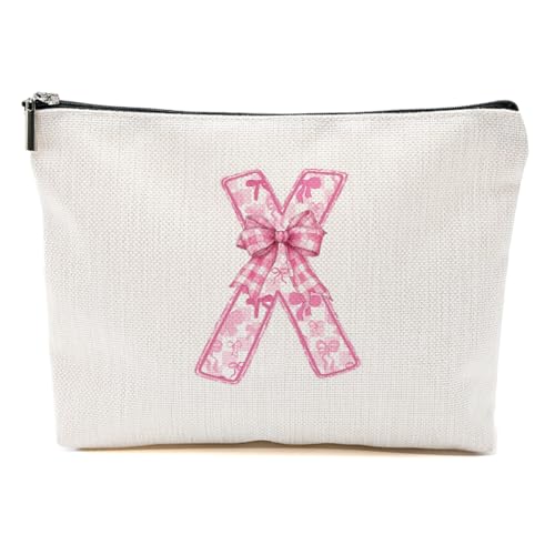MQBMQB - شنطة مكياج بتصميم حروف ابجدية من ايه-زد للنساء، شنطة مستحضرات تجميل للسفر مع سحاب، هدايا الكريسماس، X، 9.62 × 7.42 انش