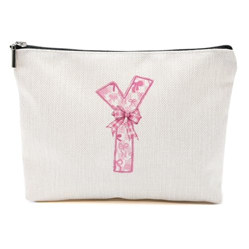 MQBMQB - شنطة مكياج بتصميم حروف ابجدية من ايه-زد للنساء، شنطة مستحضرات تجميل للسفر مع سحاب، هدايا الكريسماس، Y، 9.62 × 7.42 انش