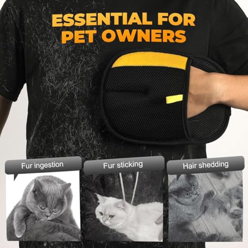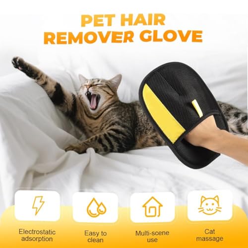 AILLZE - جوانتي إزالة شعر الحيوانات الأليفة بتقنية كهروستاتيكية للعناية بشعر الحيوانات والحلاقة والتنظيف الفعال للأريكة والأثاث والسجاد والستائر