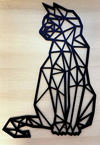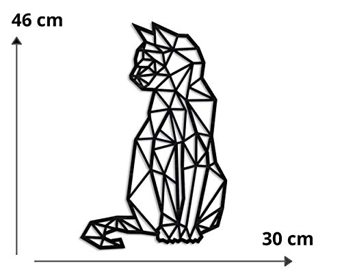 Pet-Jos - زينة حائط بتصميم قطة مقاس 46 سم من بيت جوس هندسية بسيطة للتعليق على الحائط أسود