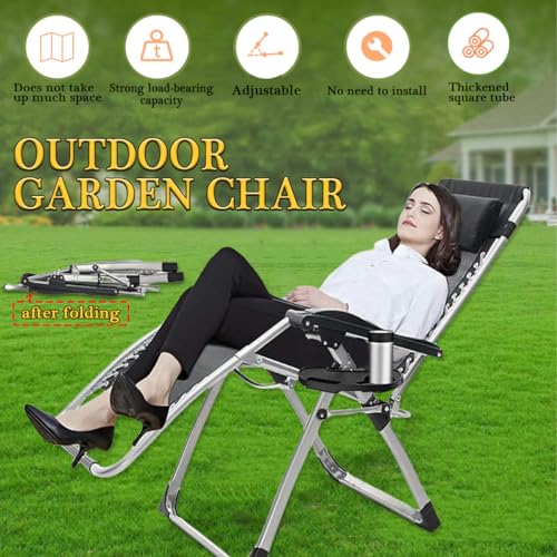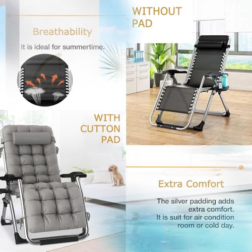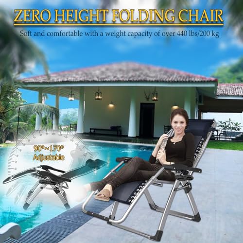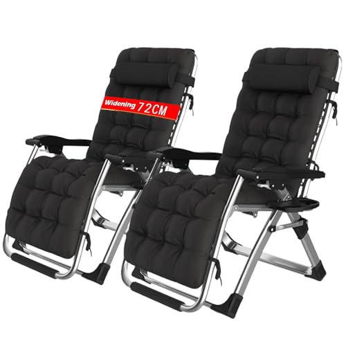 PETHOMEL - كرسي استرخاء زيرو جرافيتي قابل للطي وللإمالة مع بطانة، للاستخدام الداخلي والمكتب حمام السباحة الخارجي والشاطئ والحديقة والتخييم والشرفة مع مساند للقدمين من بيثوميل (أسود، 2 كرسي)