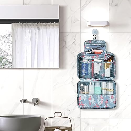 PETRICE - شنطة لأدوات الزينة، مجموعة شنط للسفر للنساء، مستلزمات السفر للنساء، شنطة لتنظيم الإكسسوارات بتصميم قابل للتعليق للنساء من بيترايس، أزرق، رمادي فلامنجو، قماش