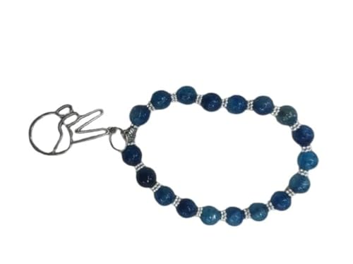 Generic - اسوره من العقيق اللون البترولي وفواصل تروس صغيرة فضية اللون ودلايه معدن فضية اللون علي شكل علامه النصر