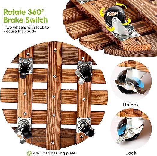Generic - حامل نباتات خشبي بعجلات مقاس 12 انش - 30 سم مع عجلات معدنية قابلة للقفل من بيتسوبس