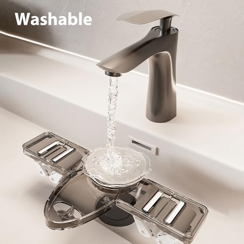 PETUPS - حامل مكنسة ومساحة موب 2025 قابل للتعديل، شماعة مكنسة بدون ثقب، حامل شرشوبة موفر للمساحة بقاعدة لاصقة للحمام والمطبخ والمكتب والمنزل من بيتابس (رمادي شفاف، قطعة واحدة)