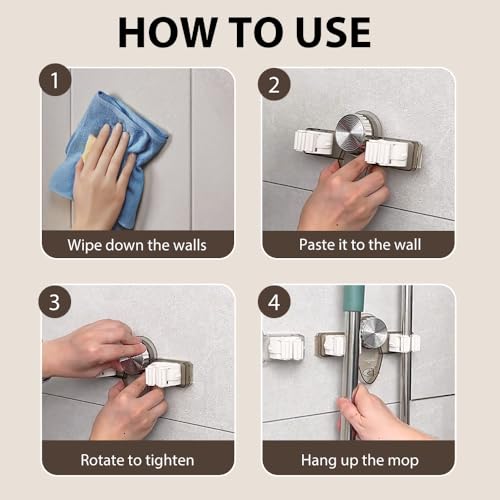 - خامة عالية الجودة: حامل مساحة موب معلق على الحائط بنظام شفط مصنوع من مادة البولي ايثيلين تيرفثالات والسيليكون غير القابل للانزلاق لتثبيت مساحة موب بإحكام بدون أن تسقط، بسهولة في الاستخدام عند الوضع والرفع. يمكن فكّه وإعادة تجميعه في أي وقت، والغسل بالماء يعيد اللزوجة لاستخدامه مجددًا.