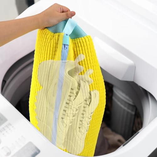 PEUTIER - شنطة غسيل أحذية قابلة لإعادة الاستخدام وقابلة للتنظيف في الغسالة ومجفف الملابس لتنظيف شامل 360 درجة لجميع الأحذية من بيوتير (أصفر)