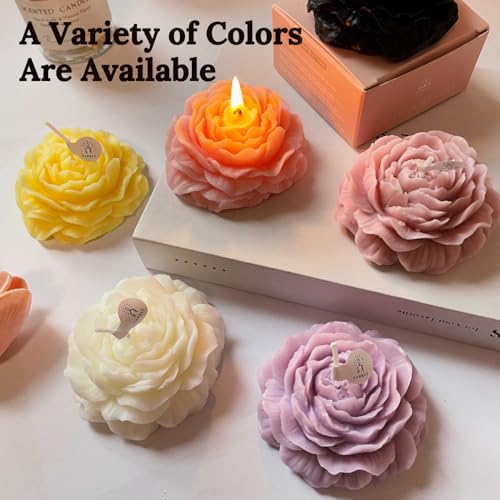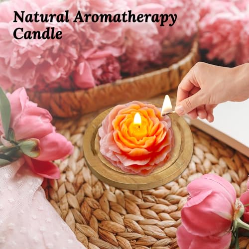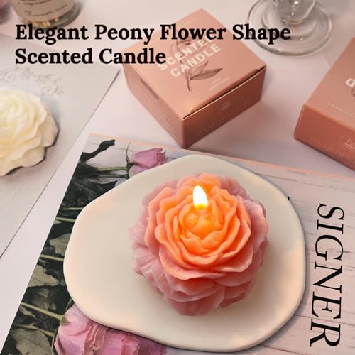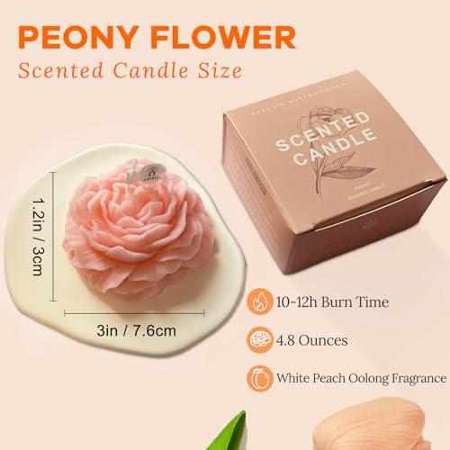 Peytanger - شموع على شكل زهرة الفاوانيا البينك الفاتح للنساء والأصدقاء وزملاء الدراسة، شمعة معطرة جمالية 3 انش برائحة الخوخ الابيض الاسود من بيتانجر