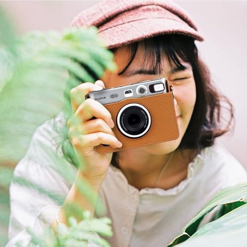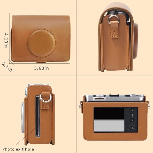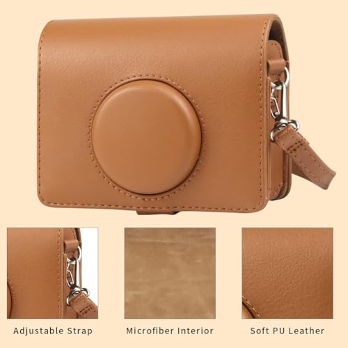 PFUTURE - حافظة ميني ايفو من بي فيوتشر من الجلد الصناعي مع واقي شاشة لكاميرا فوجي فيلم انستاكس ميني ايفو الهجينة الرقمية الفورية مع حزام كتف قابل للإزالة (بني)