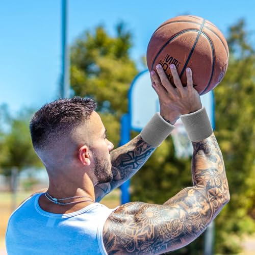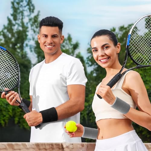 - 【محتويات العبوة】سوف تحصل على 4 قطع من رباطات العرق، 2 باللون الأسود و2 رمادي فاتح، صُممت رباطات المعصم الماصة للعرق من خامة القطن العضوي السميك مزدوج الطبقات، تمتص العرق بشكل فعال وتجف بسرعة، مما يجعلك تركز تمامًا في رياضتك.