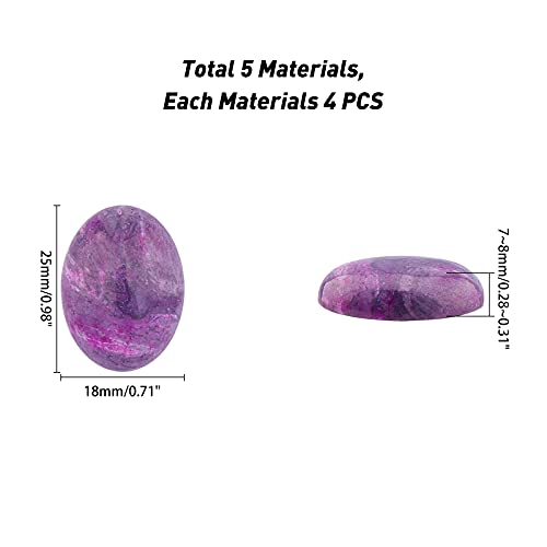 PH PandaHall - بي اتش باندا هول احجار كريمة بيضاوية كابوشون بظهر مسطح من 5 الوان، 20 قطعة مقاس 25 × 18 ملم، حجر شاكرا كوارتز لصنع المجوهرات والحرف اليدوية