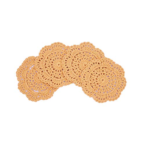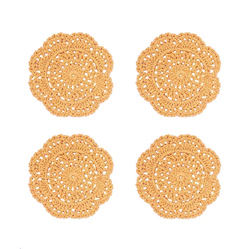 Phantomon - مفرش مخرم مستدير كروشيه مصنوع يدويًا يستخدم كقاعدة للأكواب من فانتومون، 10 سم، عبوة من 4 قطع (جينجر يالو)
