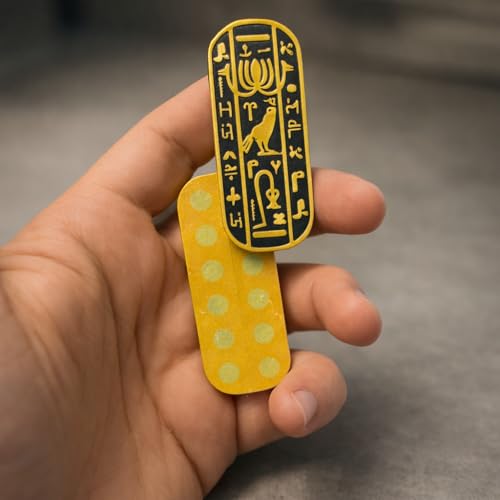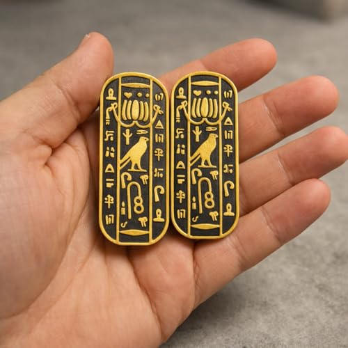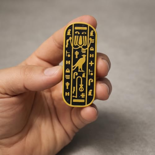 - تصميم مصري قديم: يتميز بشكل خرطوش أصلي مزين بالهيروغليفية الذهبية المعقدة وزخارف الصقر على خلفية سوداء مذهلة.