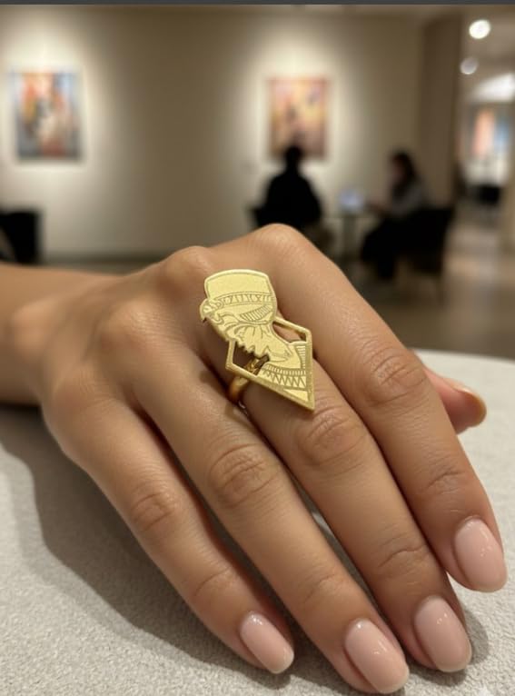Generic - خاتم ذهبي بتصميم فرعونى، معدن، ملكة مصرية، مقاس قابل للتعديل-قطهة واحدة