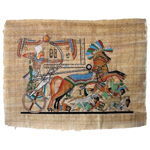 Ancient Egyptian Paintings - ورق بردي مصري قديم برسمة عربة فرعون رمسيس الثاني، القائد العسكري العظيم والمدير البناء، 33×43 سم