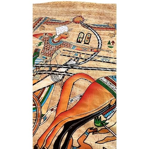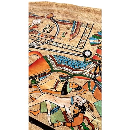 - الخامة والأصل - مرسومة يدويًا بنسبة 100% في مصر على ورق بردي مصري مصنوع يدويًا. مصنوعة من أوراق نبات البردي المزروعة في مصر بنفس التقنيات التي استخدمها المصريون القدماء. صناعة يدوية/مرسومة يدويًا: الجيزة، مصر.