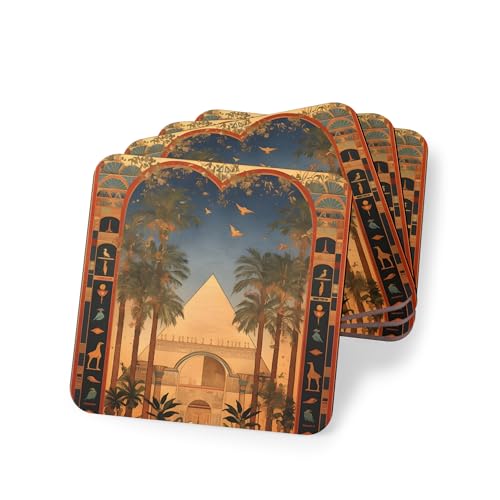 Generic - قواعد أكواب مطاطية بتصميم فرعوني - قواعد أكواب مطاطية مضادة للانزلاق لديكور الطاولة والمكتب - مجموعة من 4 قطع