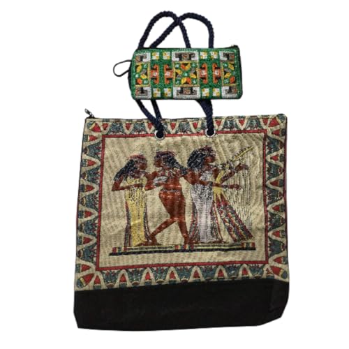 Generic - شنطة يدوية بنقوش فرعونية مع بوك داخلي منفصل مقاس الشنطة: 39 × 41 سم — حجم كبير يناسب الاحتياجات اليومية. – Le Marché