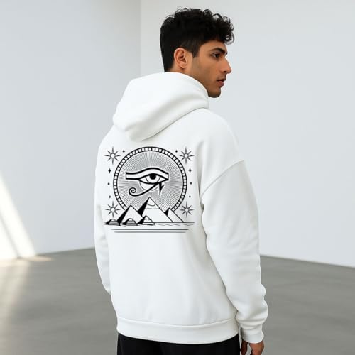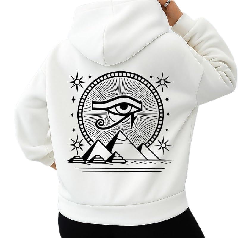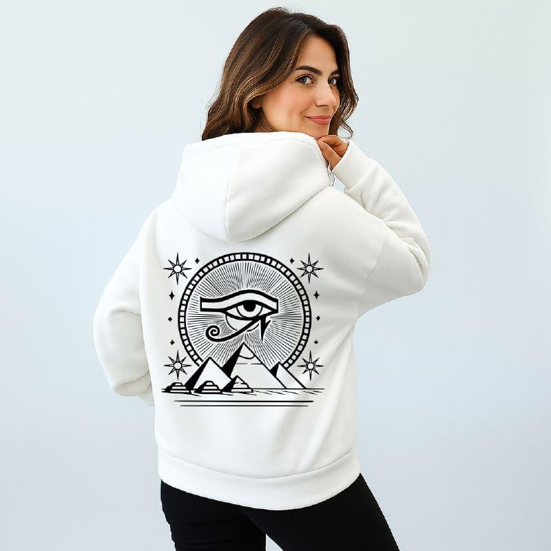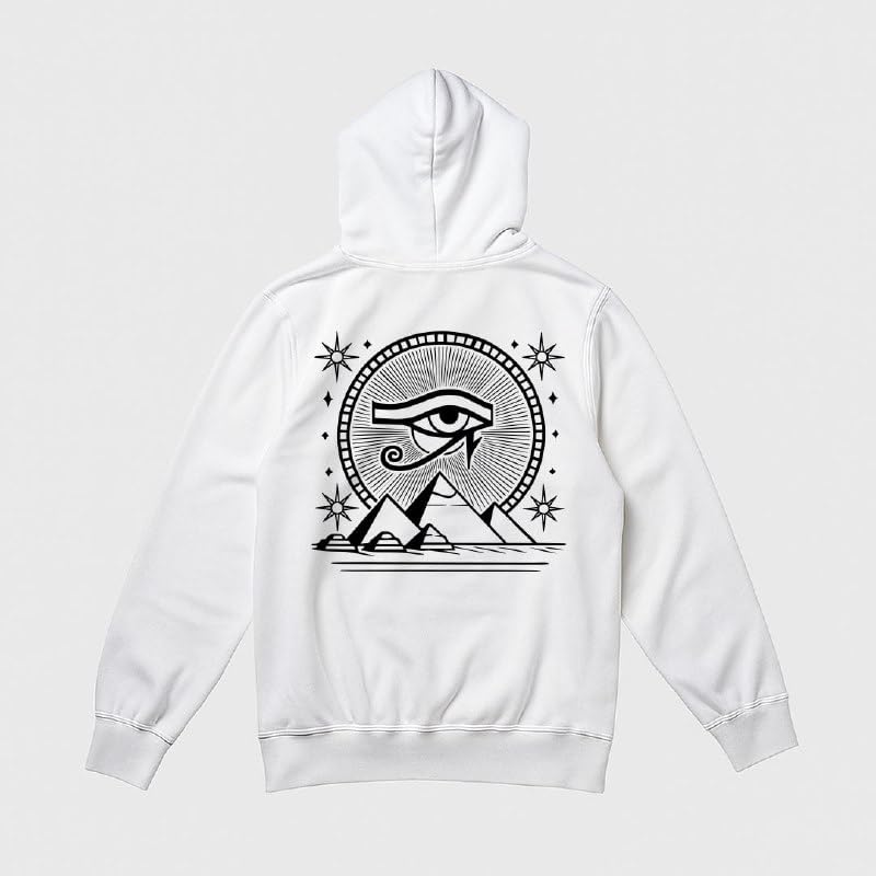 Generic - مجموعة هودي بطبعة رموز فرعونية سوداء - ملابس الشارع التراثي المصري | هودي ميلتون قطن ابيض للجنسين