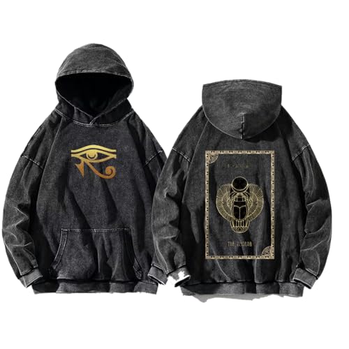 Generic - سترة بقلنسوة بتصميم متحف الاهرامات المصرية للفراعون، حمض مغسول 12