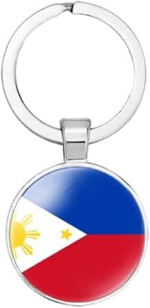 Generic - سلسلة مفاتيح بتصميم علم دولة الفلبين الثلاثي الألوان، حلقة مفاتيح معدنية فضية تذكارية لمشجعي فريق كرة القدم