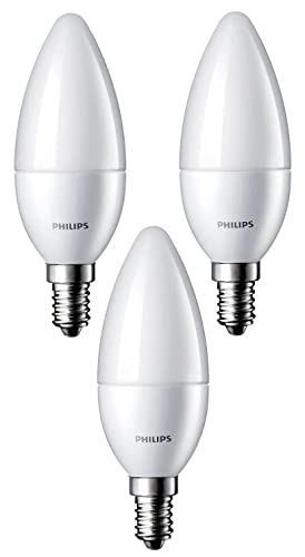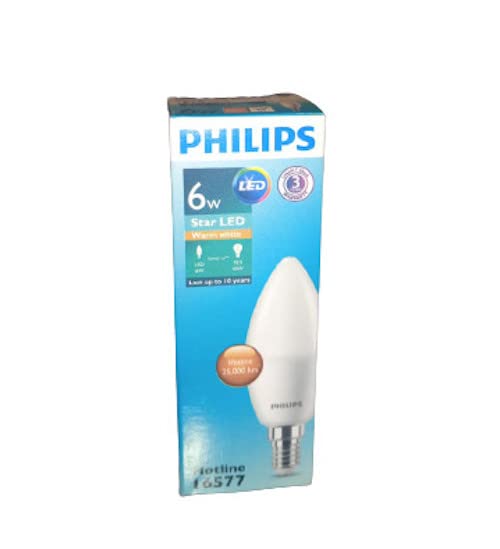 PHILIPS - عدد 3 لمبة ليد 6 من فيليبس - كعب رفيع E14 للنجف كفاءة عالية جدا 25 الف ساعة تشغيل عبوة اقتصادية لجميع استخدامات الاضاءة (اضاءة صفراء)، أبيض، واط