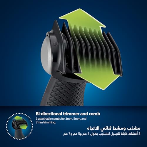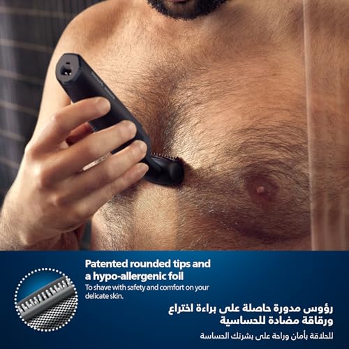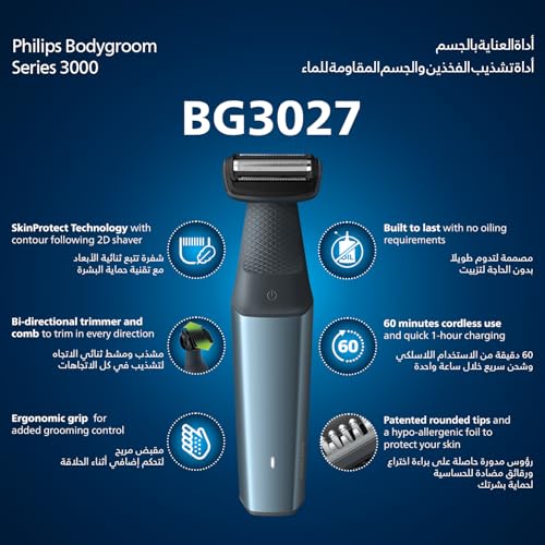 Philips - فيليبس بودي جروم Bg3027/03 | اداة تشذيب الفخذ والجسم مقاومة للاستحمام | ماكينة حلاقة للجسم، امشاط 3 اطوال | 60 دقيقة لاسلكية لحماية البشرة وقبضة مريحة