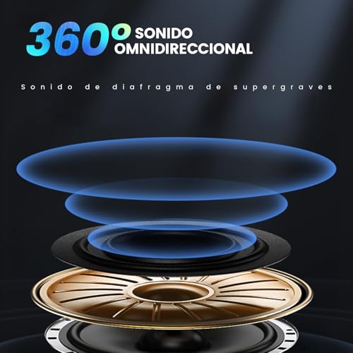 - 【إضاءة ار جي بي محيطية بزاوية 360°】استمتع بعرض بصري مذهل مع إضاءة ار جي بي تدور بزاوية 360°، لتضفي جوًا احتفاليًا وحيويًا لحفلاتك أو لحظات الاسترخاء.