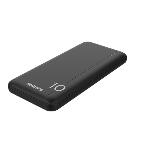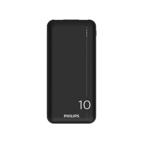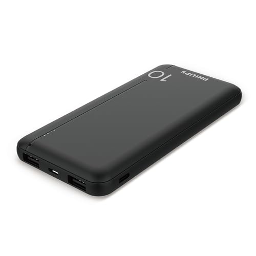 Philips - شاحن باور بانك بسعة 10.000 مللي أمبير في الساعة مع 2 منفذ USB A ومنفذ USB نوع C (PD) من فيليبس، أسود