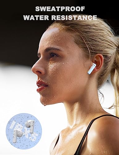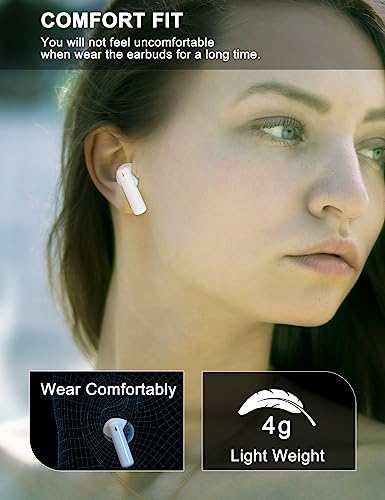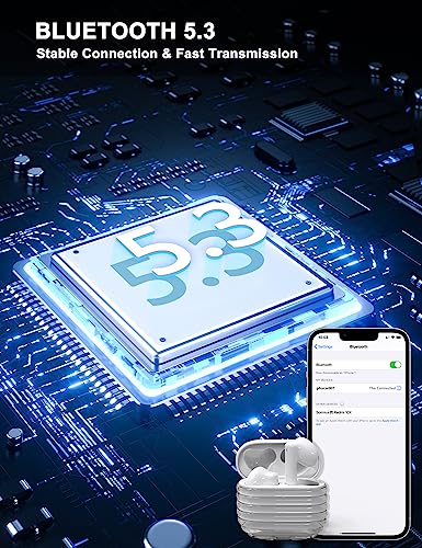 PHOCAR - فوكار سماعات بلوتوث 5.3 لاسلكية بخاصية إلغاء الضوضاء البيئية والتحكم باللمس وشحن سريع عبر USB نوع C ومقاومة للماء، لأجهزة ايفون او اندرويد من داخل الأذن، أبيض