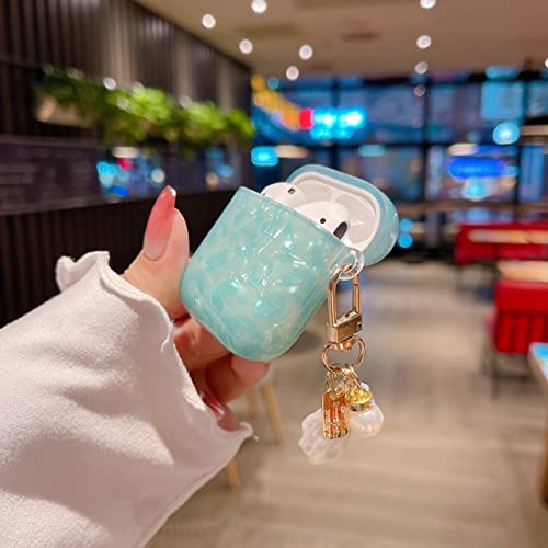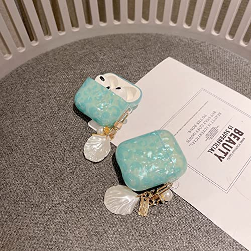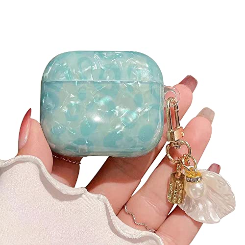 PHOEACC - جراب متوافق مع ايربودز الجيل الثالث (غير مناسب لايربودز برو)، جراب حماية كيوت مع صدفة لؤلؤ وسلسلة مفاتيح جميلة بنقشة جلد الفهد من بولي يوريثين حراري صلب للبنات والمراهقات والنساء من فوياك (ازرق)