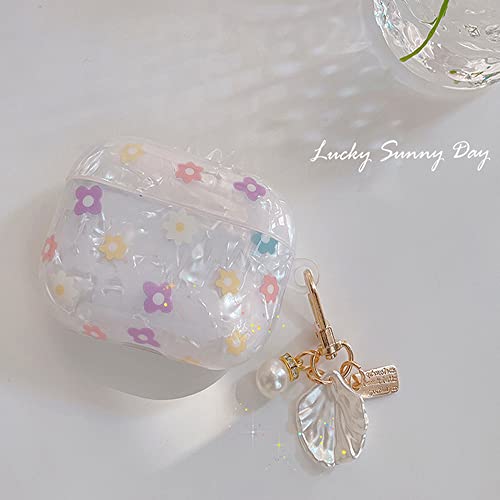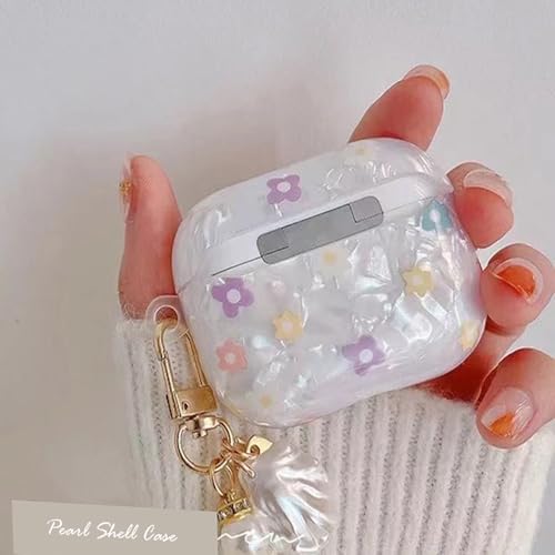 PHOEACC - جراب حماية لعلبة سماعات ايربودز الجيل الثالث من فوياك، جراب لطيف بتصميم ورود جميلة مع ميدالية مفاتيح شكل صدفة ولؤلؤ، جراب حماية للبنات والمراهقات والنساء (مشجر)، بولي يوريثين اللدن بالحرارة