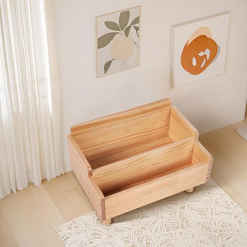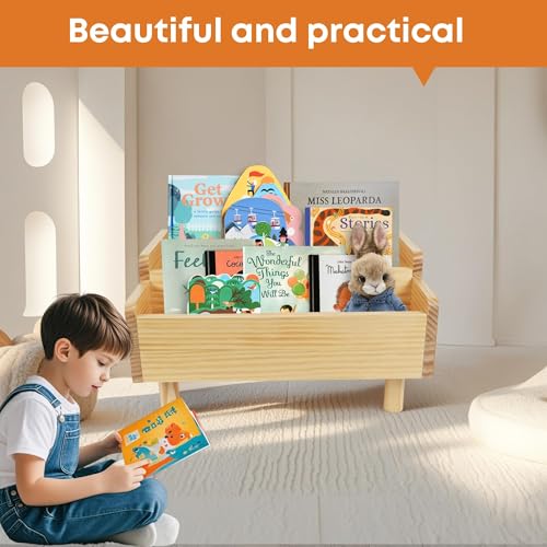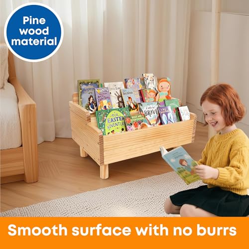 PHOENANCEE - رف كتب للأطفال، رف كتب مونتيسوري صغير للأطفال الصغار، رف كتب بتصميم مقسم، حاوية لتخزين الكتب للأطفال الصغار مصنوعة من خشب الصنوبر لغرفة اللعب وغرفة الأطفال والحضانة والفصول الدراسية من فينيانسي