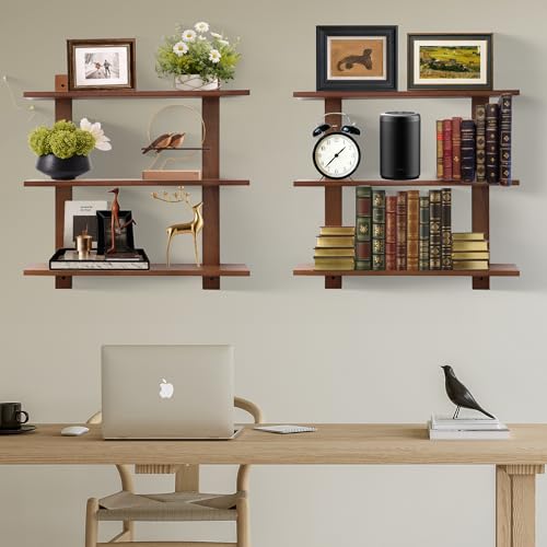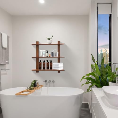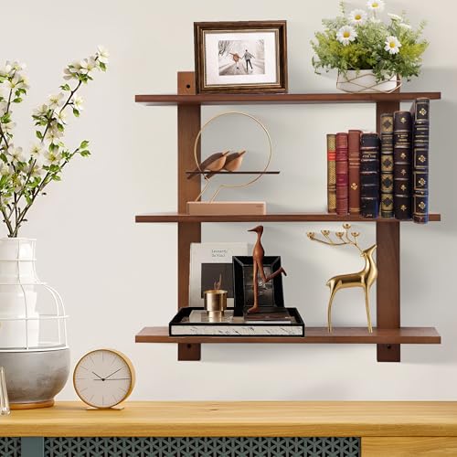 PHOENANCEE - فينيانس ارفف عائمة طويلة للحائط، رف تخزين للعرض من 3 طبقات، ارفف حمام معلقة بتصميم ريفي لغرفة المعيشة وغرفة النوم والمطبخ والمكتب والمقهى، 24 انش، عبوة من قطعتين (خشب الجوز)