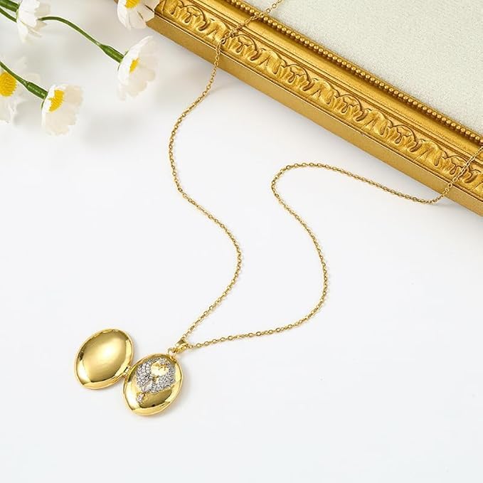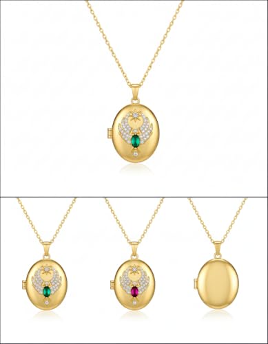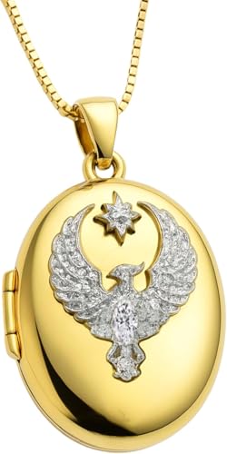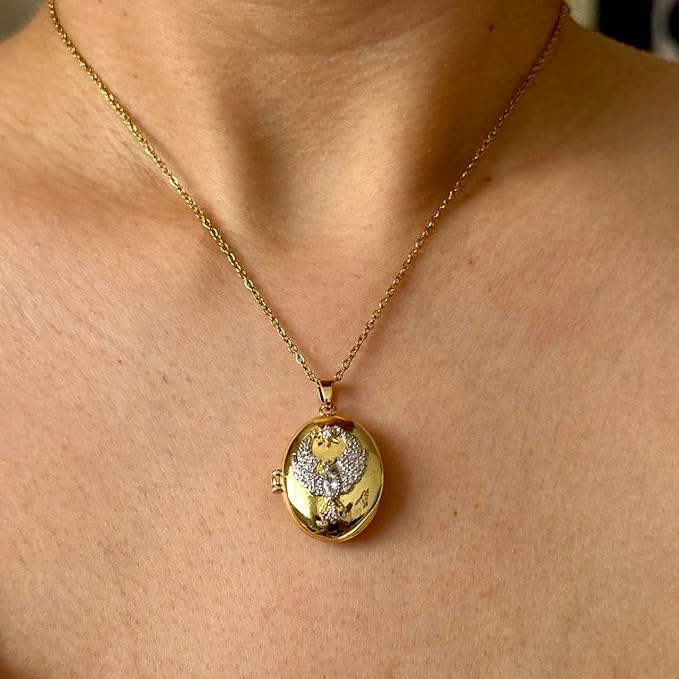 Generic - سلسلة طائر العنقاء للنساء - قلادة بيضاوية بتصميم نسر كريستالي ونجمة، تفتح لحمل الصور الشخصية - هدية مجوهرات تذكارية انيقة