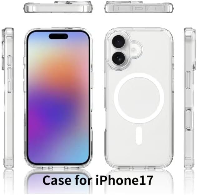 ELMO3EZZ - جراب حماية شفاف مغناطيسي لموبايل آيفون 17، متوافق مع ماج سيف، مضاد للاصفرار، جراب حماية خلفي ممتص للصدمات لموبايل آيفون 17 6.27 بوصة 2025