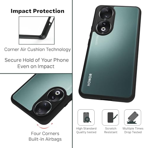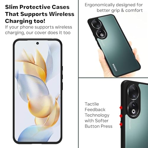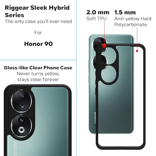 Generic - جراب حماية خلفي شفاف بتصميم مضاد للاصفرار مزود بإطار ممتص للصدمات لموبايل هونر 90، أسود