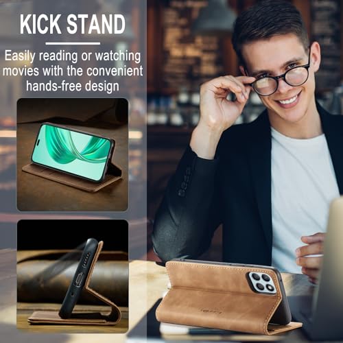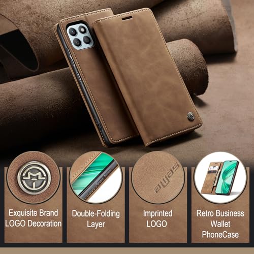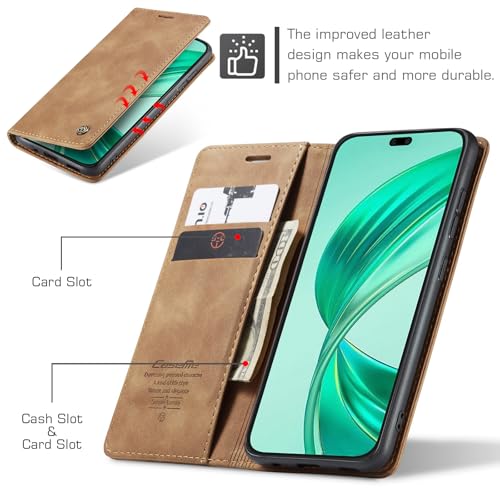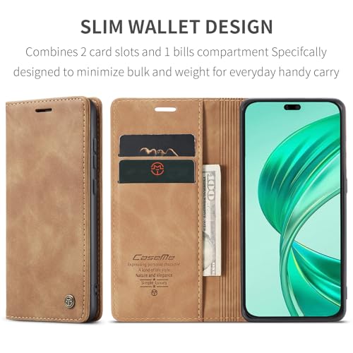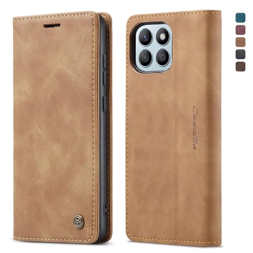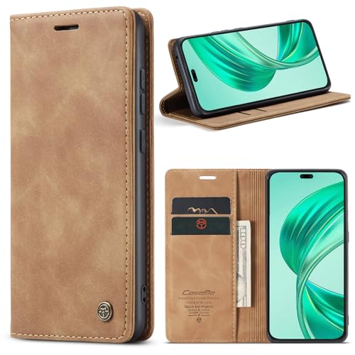 Generic - جراب حماية جلد صناعي مع غطاء قابل للطي وفتحة بطاقة متوافق موبايل هونر x8B شبكة الجيل الرابع 4G بني