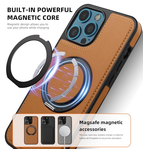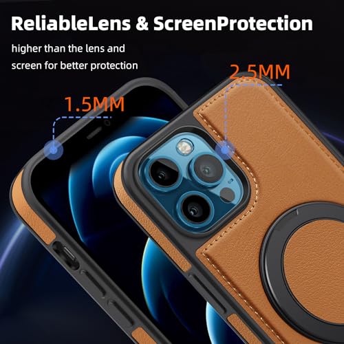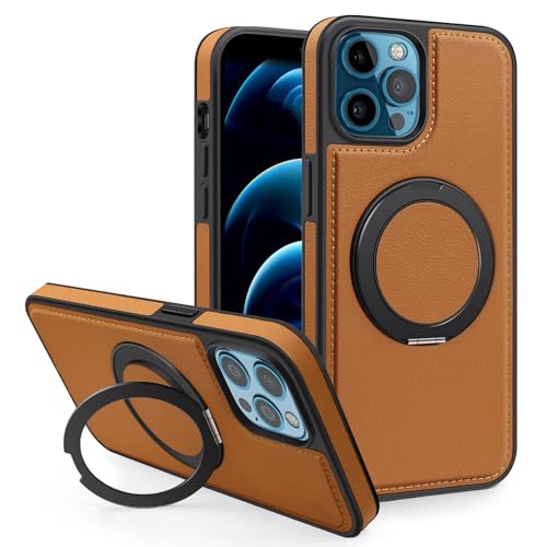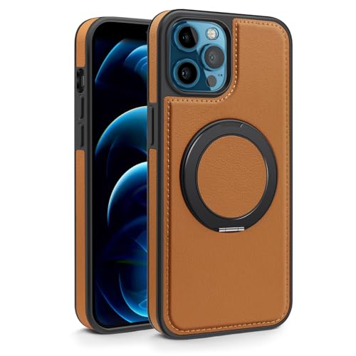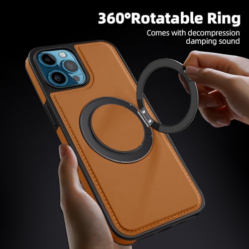Generic - جراب حماية خلفي من جلد صناعي مع حلقة معدنية مغناطيسية للشحن اللاسلكي متوافق مع موبايل آيفون 12 برو ماكس (بني داكن)