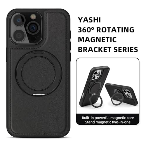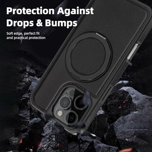 Generic - جراب موبايل متوافق مع ايفون 16 برو ماكس، غطاء خلفي-جلد البولي يوريثين الفاخر حلقة معدنية مغناطيسية للشحن اللاسلكي (اسود)