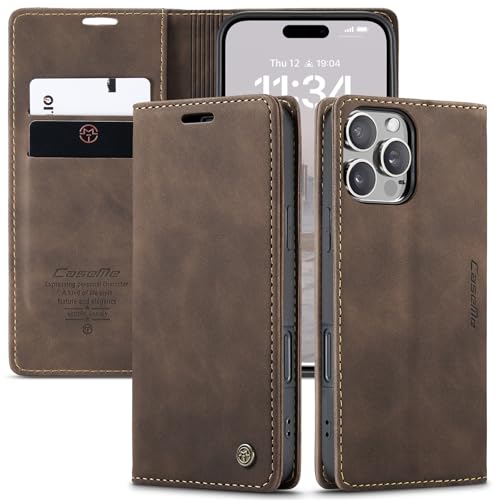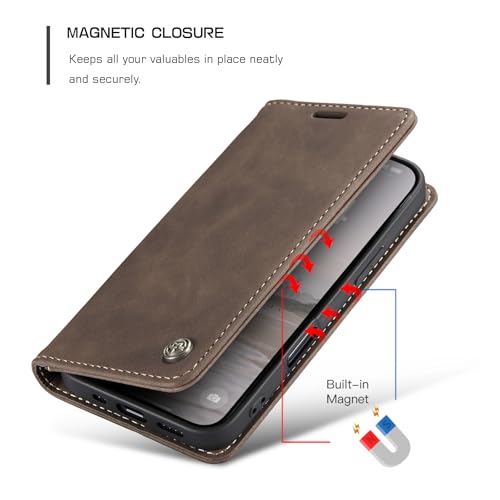 Generic - جراب حماية خلفي بتصميم قابل للطي مزود بفتحة للبطاقات من الجلد الصناعي الفاخر لموبايل آيفون 16 برو ماكس، لون بني