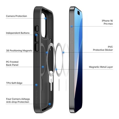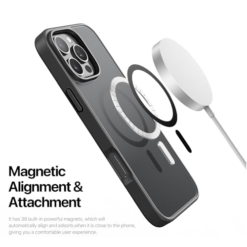 Generic - جراب موبايل متوافق مع ايفون 16 برو ماكس، خلفي مغناطيسي للشحن اللاسلكي غير لامع (اسود)