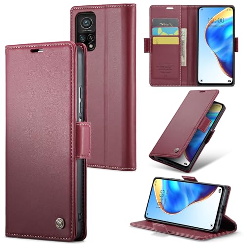 Generic - جراب هاتف متوافق مع Mi 10T - 10T Pro فليب من الجلد الصناعي الفاخر وفتحة حامل للبطاقات 10T 10T Red لشاومي