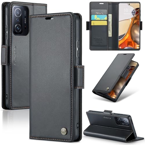 Generic - جراب هاتف متوافق مع Mi 11T / Pro فليب من الجلد الصناعي الفاخر وفتحة حامل للبطاقات (Black)، لمي 11 تي، أسود