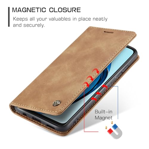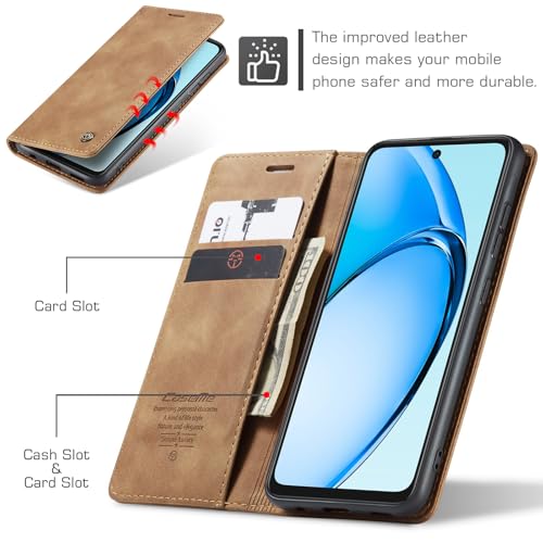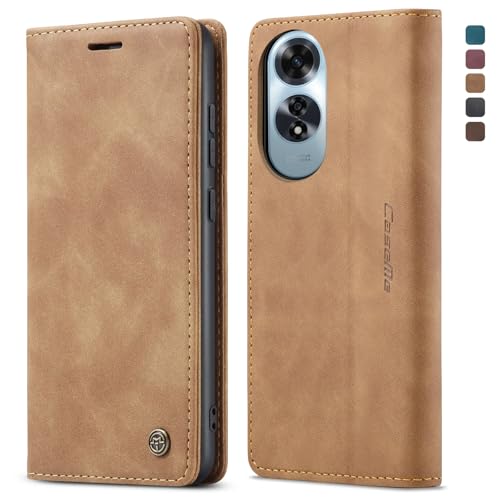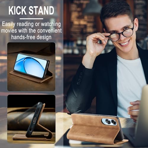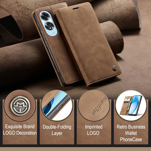 Generic - جراب موبايل متوافق مع موبايل أوبو A60 شبكة الجيل الرابع 4G بتصميم فاخر من جلد الصناعي مع غطاء قلاب وجيبين لحمل البطاقات متوافق مع موبايل أوبو 4G A60 (بني)